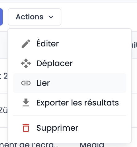 Soit un par un, soit en masse via “Sélectionner tous les résultats” - Lancez l’action lier en masse Lier Choisir le type de liaison : Produit → Média, ou Variant → Média