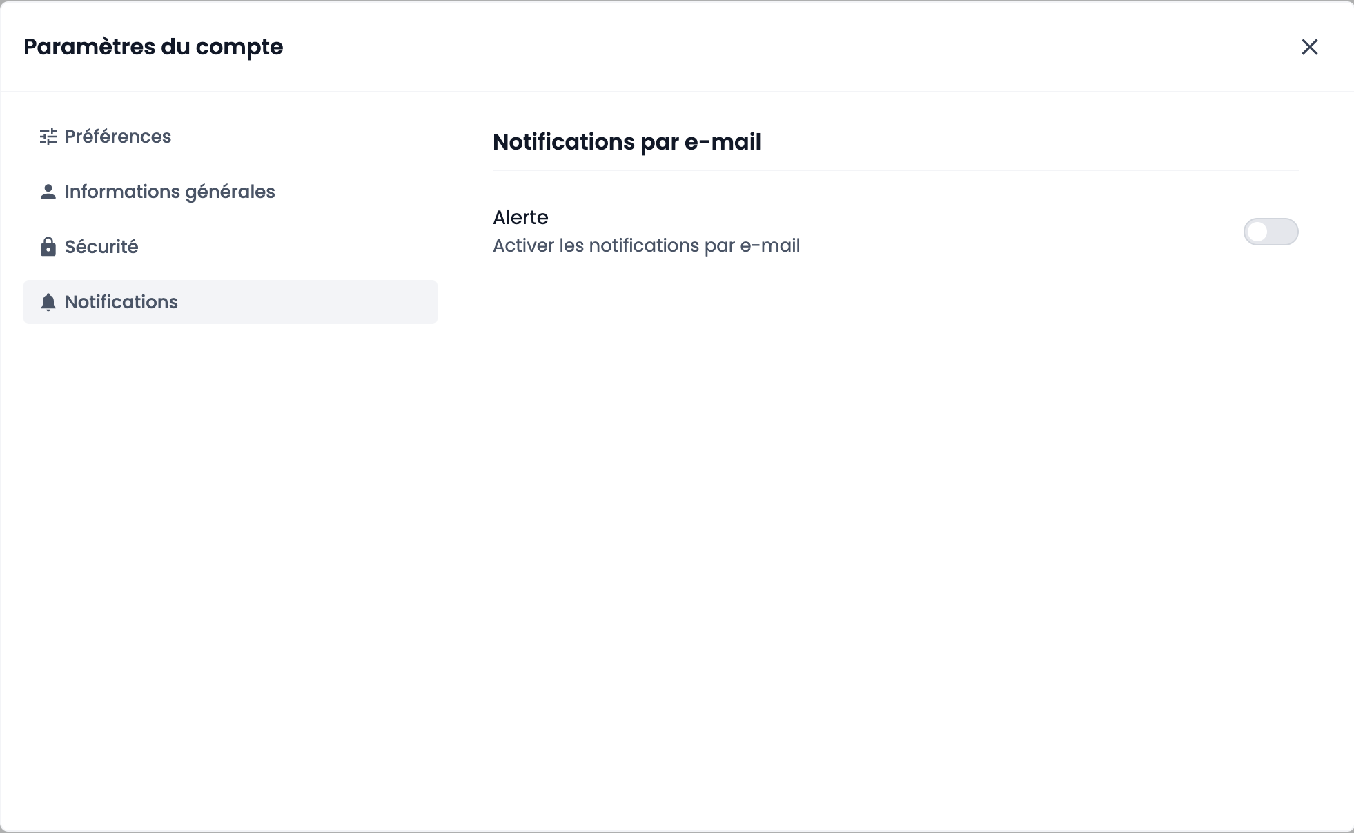 Vous pouvez activer ou désactiver les notifications par e-mail en cliquant sur le bouton à bascule Activer les notifications par e-mail.