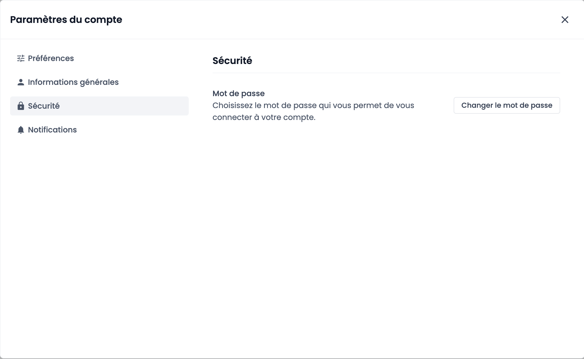 Vous pouvez mettre à jour vos informations de connexion et modifier votre e-mail en cliquent sur le bouton changer d'adresse e-mail.