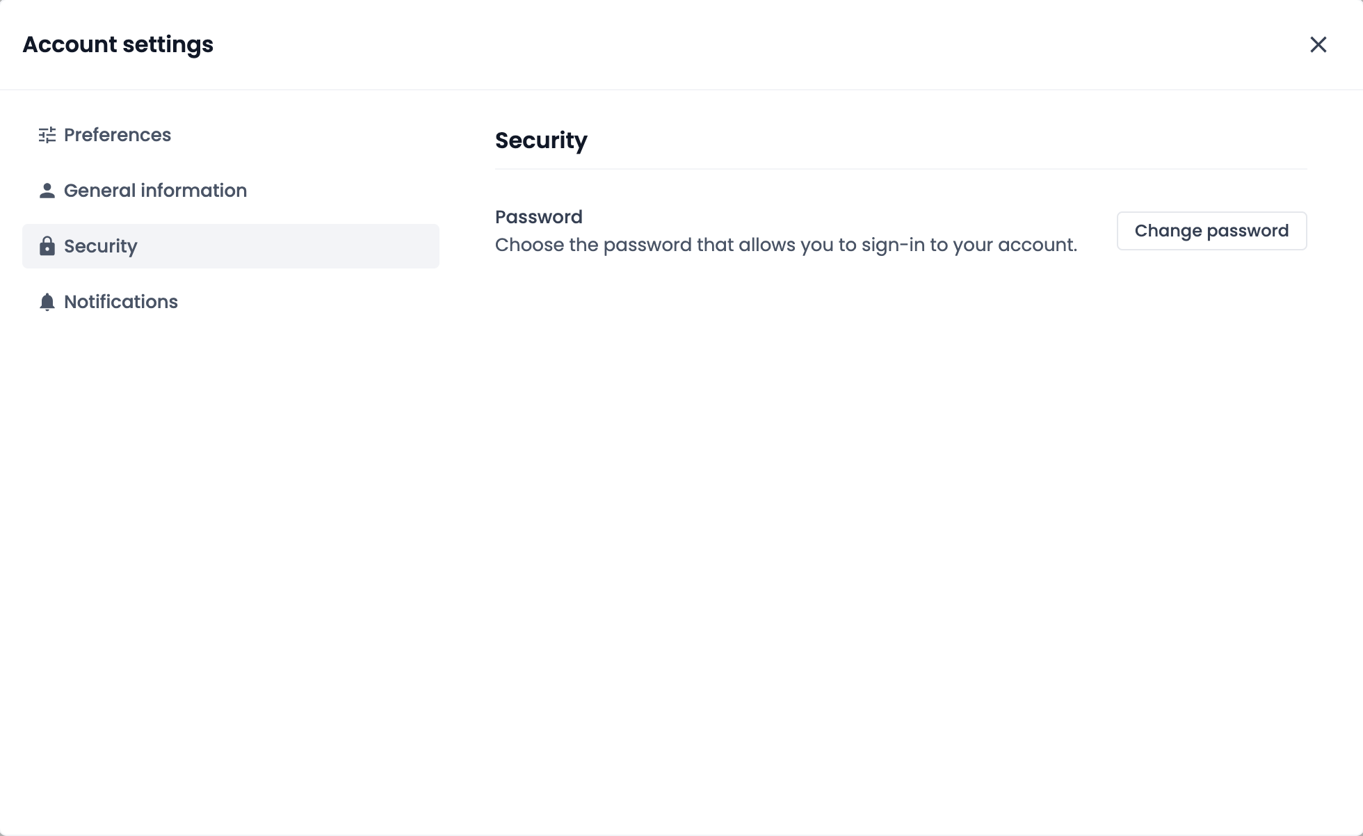 Choose the password that allows you to log in to your account by clicking on the **change password **button. Your password must meet the following security conditions: