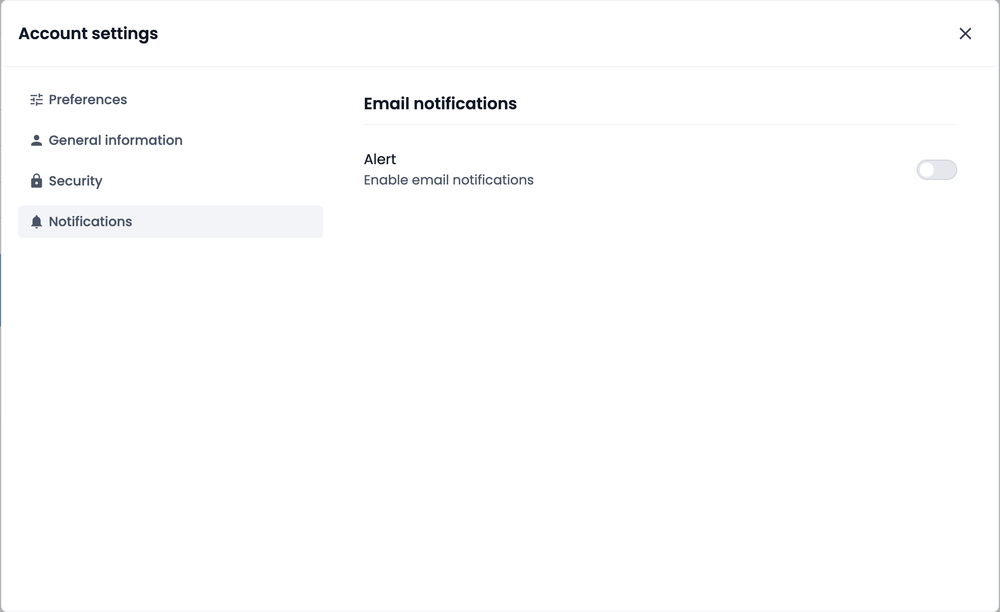 You can enable or disable e-mail notifications by clicking on the Enable e-mail notifications toggle button.